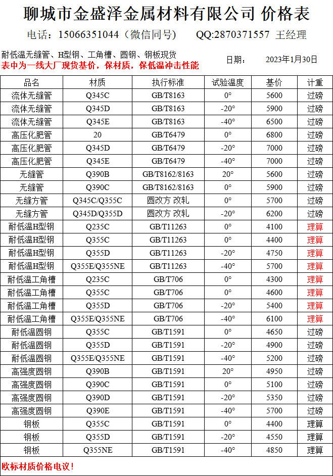 聊城市金盛澤金屬材料有限公司主營(yíng)低合金/耐低溫?zé)o縫管,方矩管,H型鋼,工字鋼,角鋼,槽鋼,圓鋼,鋼板;現(xiàn)貨供應(yīng):大無(wú)縫、包鋼、煙寶、鳳寶正品耐低溫?zé)o縫管,專(zhuān)業(yè)加工生產(chǎn)無(wú)縫方矩管;經(jīng)營(yíng)一線(xiàn)品牌型材:萊鋼/包鋼/馬鋼/日鋼 耐低溫Q235B/C;Q355B/C/D/NE H型鋼(100*100-1000*300) 偏型號(hào)H型鋼鋼現(xiàn)貨:250/255,248/124,344/348,394/398,506/201,606/201,458/417,912/302,692/300,792/300 ;萊鋼/馬鋼/宣鋼產(chǎn) 耐低溫槽…